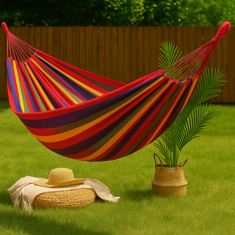 Détendez-vous avec style grâce au hamac AeroNest. Fabriqué en toile résistante et respirante, il vous enveloppe confortablement, que vous vous prélassiez dans le jardin, à la plage ou en camping. Ses rayures audacieuses ajoutent une touche de gaieté à n'importe quel décor.
