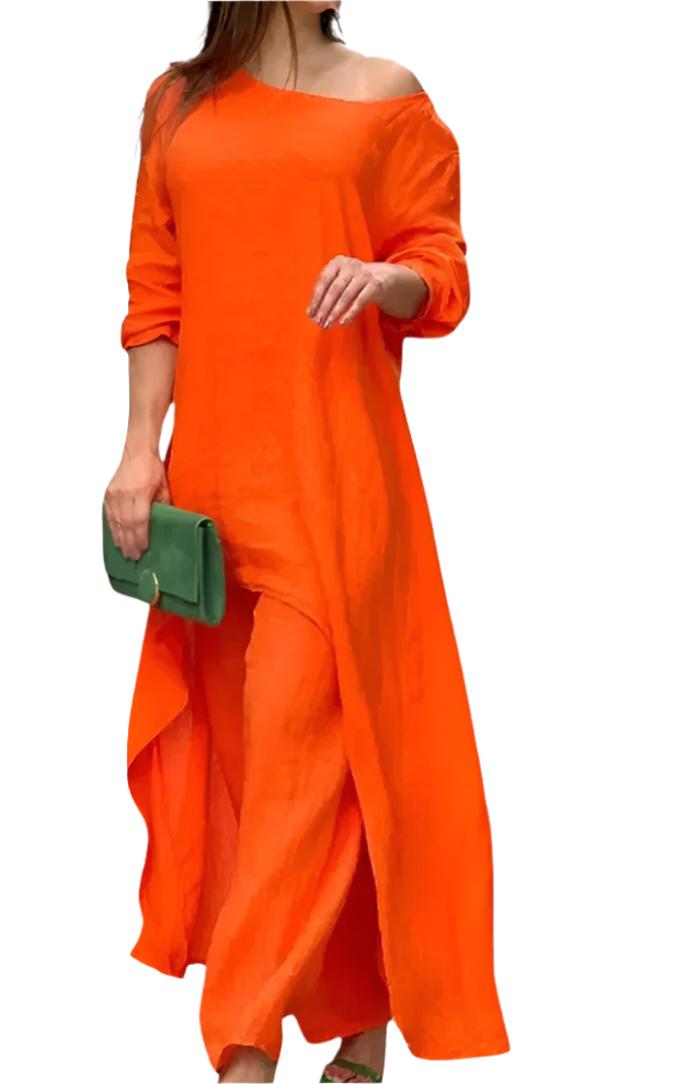 Le haut asymétrique Aria et le pantalon à jambes larges combinent des lignes modernes avec une silhouette décontractée pour créer un look élégant et coordonné. Avec un haut flottant à ourlet asymétrique et un pantalon large assorti, cet ensemble est idéal pour les femmes qui apprécient l'élégance et la légèreté dans des tailles droites. Parfait pour des occasions spéciales, des événements semi-formels ou une tenue de tous les jours soignée.