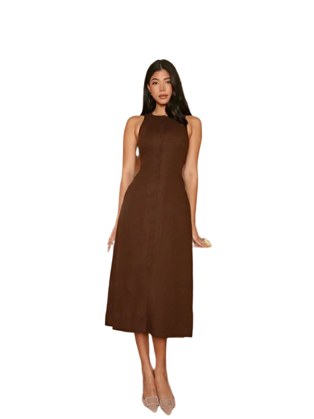 La Robe Midi Sans Manches Ariane avec Boutons est un must-have raffiné dans votre garde-robe, alliant design épuré et accents sophistiqués. Conçue avec une coupe sans manches flatteuse et une fermeture à boutons devant, cette robe midi est parfaite pour les journées chaudes et les saisons de transition. Que ce soit pour un brunch, une réunion au bureau ou un après-midi en ville, cette pièce offre une simplicité polie.