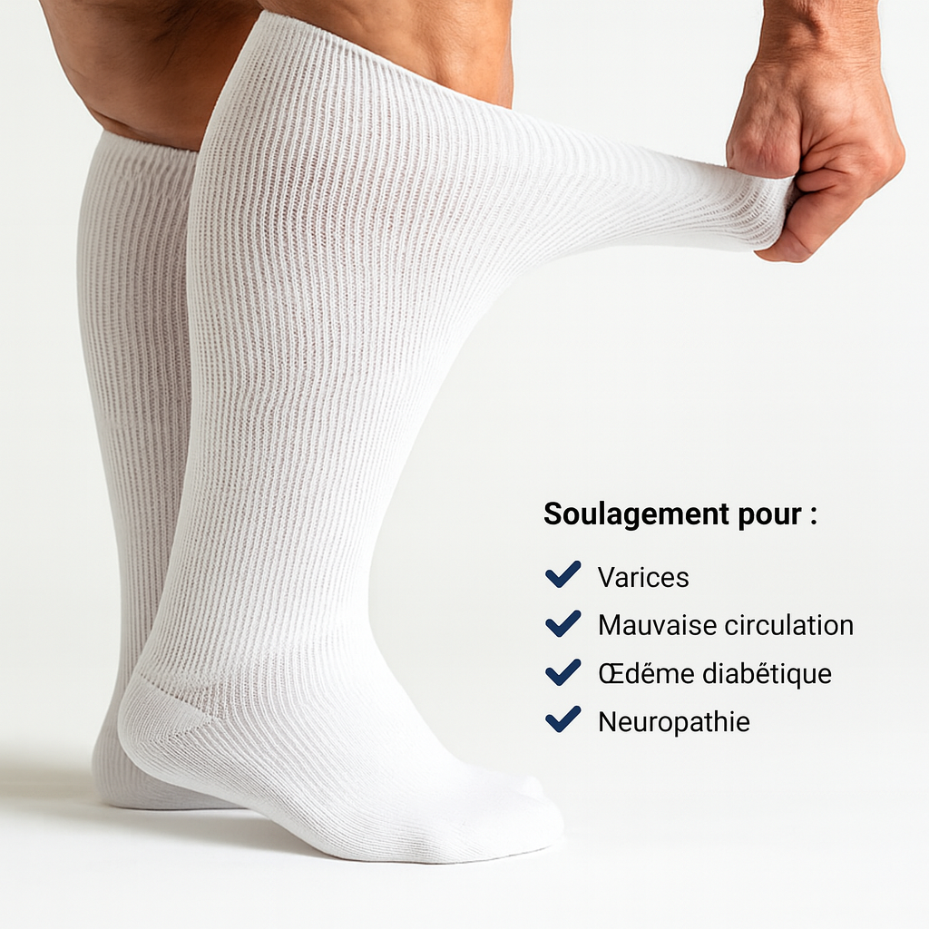 Les bas de compression ne sont pas réservés aux personnes âgées – beaucoup de gens connaissent aujourd'hui ce problème : rester longtemps assis au bureau, passer des heures debout dans la vie quotidienne ou ressentir les premières gênes dues à des problèmes veineux. Les jambes deviennent lourdes, enflent et se sentent fatiguées.