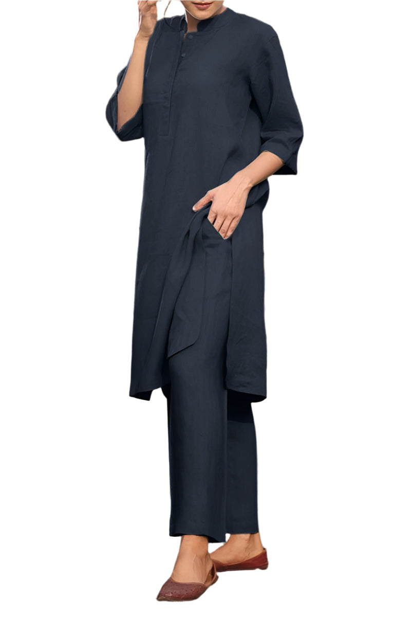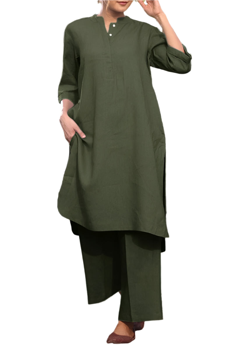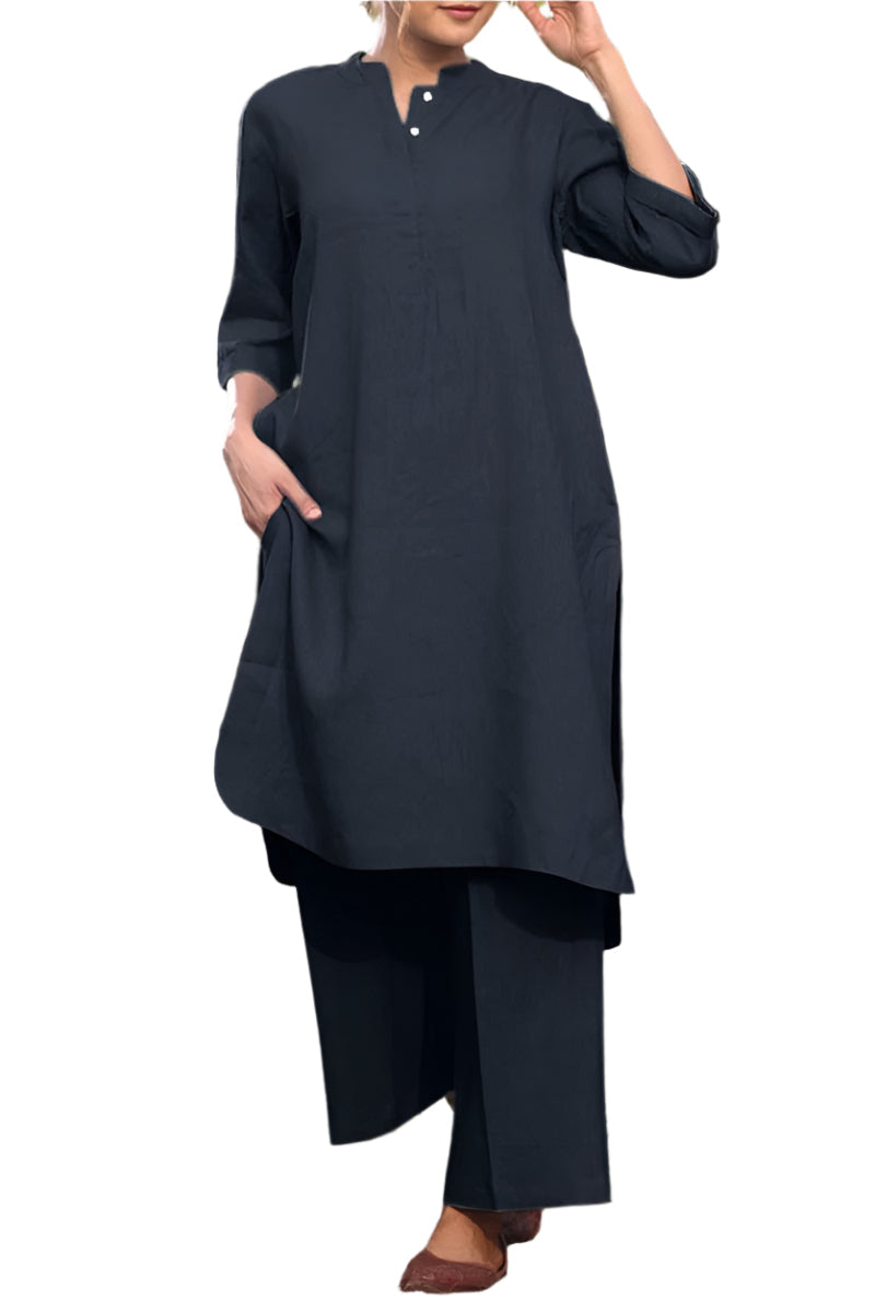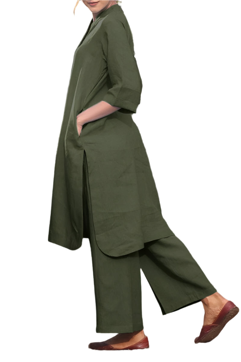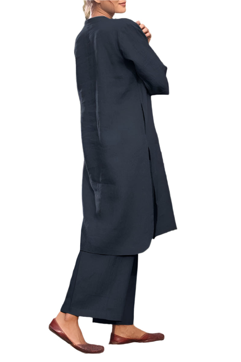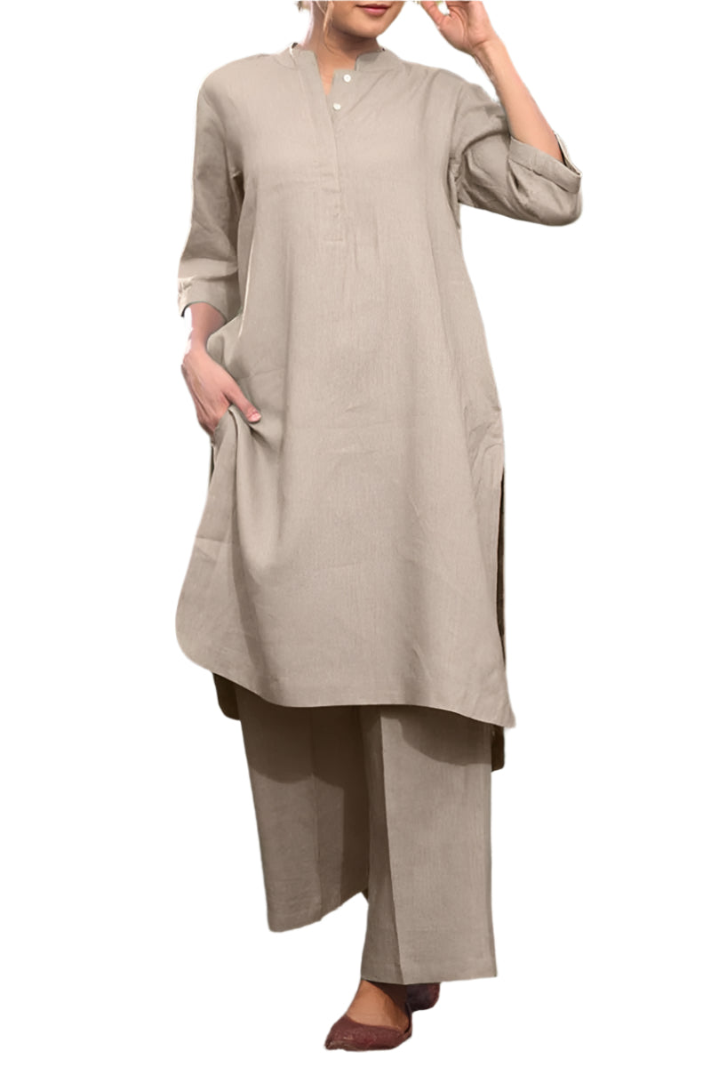 L'ensemble lounge EaseMode offre le parfait équilibre entre confort et élégance décontractée. Avec un haut à manches longues à col rond et un pantalon assorti à jambes larges, cette tenue coordonnée est conçue pour des journées relaxantes, des soirées confortables ou des sorties décontractées - tout en vous gardant parfaitement stylée.