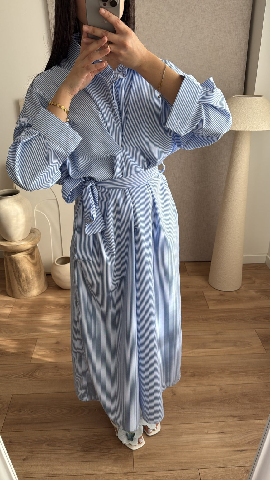 La robe Elowen dispose d'une fermeture frontale à boutons et d'une longueur modeste qui offre du confort sans compromettre le style. Les longues manches offrent une légère couverture, tandis que le tissu fluide garantit un vêtement respirant. C'est le parfait basique pour la femme qui apprécie une élégance discrète et une légèreté raffinée.