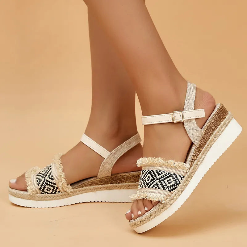 Les sandales à talons compensés Elvira allient style et confort, vous permettant de marcher avec assurance toute la journée. Le design moderne avec une sangle réglable offre un ajustement parfait, tandis que le talon compensé léger ajoute de l'élégance sans compromettre la stabilité.