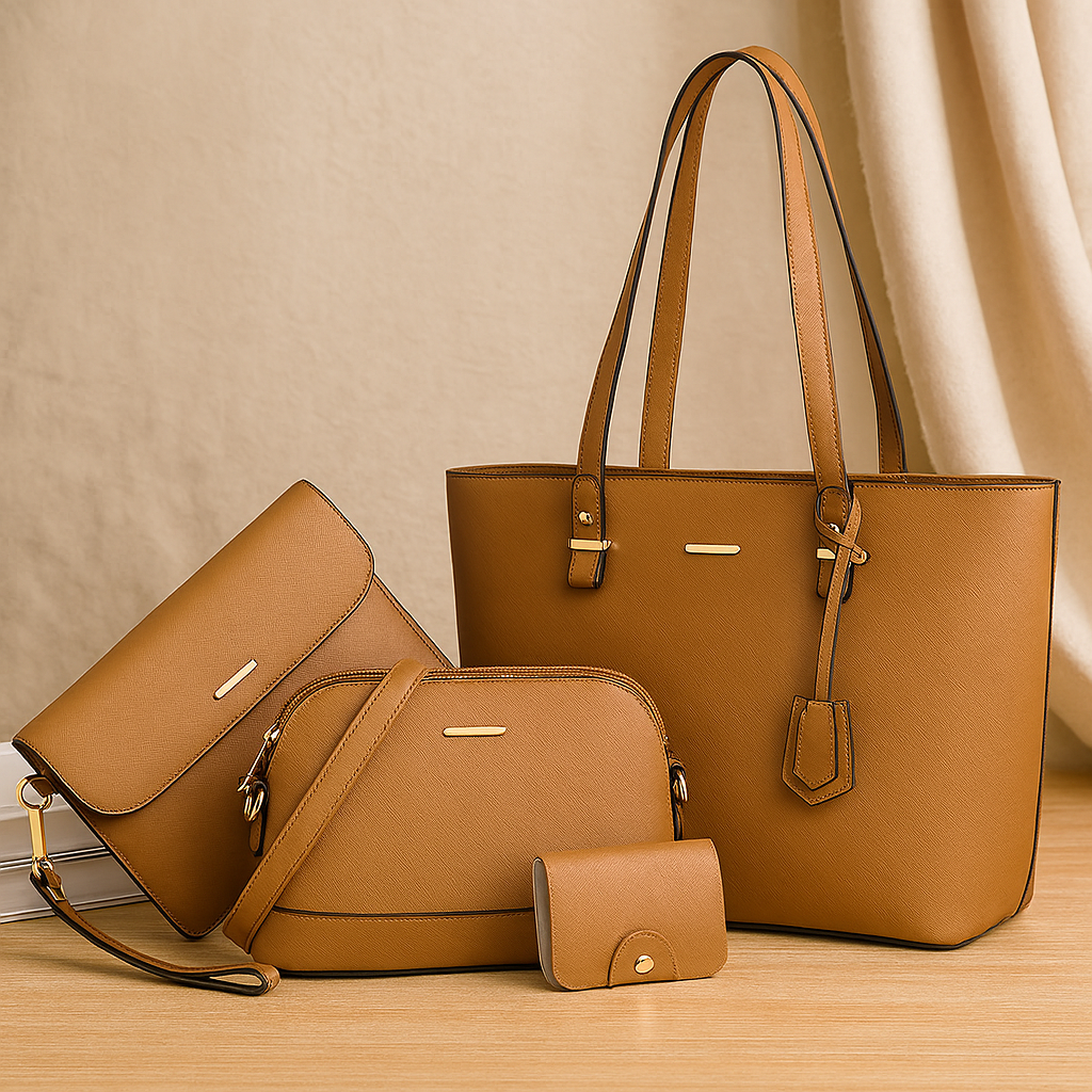 Cet ensemble de 4 sacs est la solution idéale pour les femmes qui privilégient la variété et l'organisation. Composé d'un sac fourre-tout, d'un sac bandoulière, d'une pochette et d'un porte-cartes, chaque pièce est conçue pour se compléter et répondre à un usage spécifique. Idéal pour le travail, les voyages et la vie quotidienne.