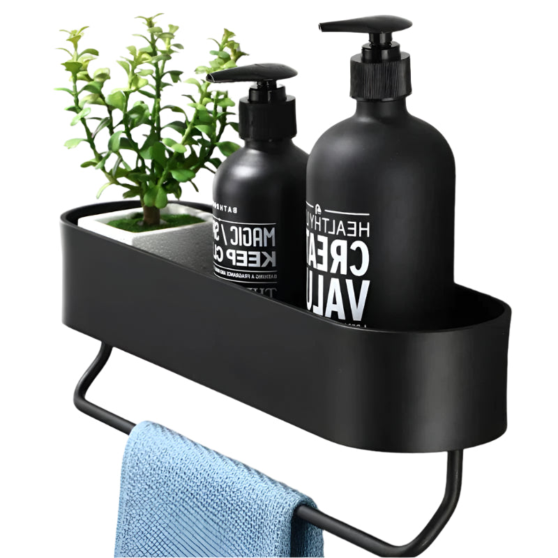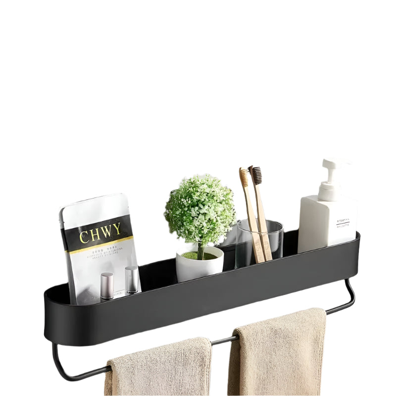 - Étagère de salle de bain murale avec porte-serviettes intégré.