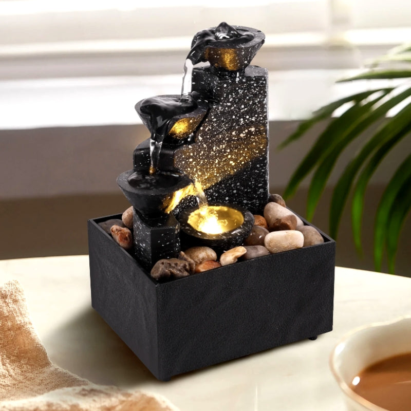 Transformez votre espace avec la fontaine de bureau à cascade paisible, conçue pour créer une atmosphère sereine. Le son apaisant de l'eau qui ruisselle, associé à son design élégant, apporte relaxation et déstressage.