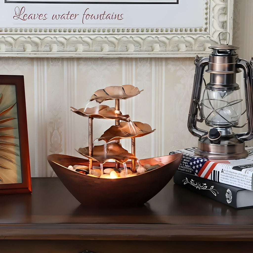 Élevez votre ambiance avec cette fontaine décorative inspirée des feuilles, qui mélange esthétique naturelle et éclairage moderne. Idéale pour les salons, bureaux ou jardins, elle constitue le point central parfait pour la détente.