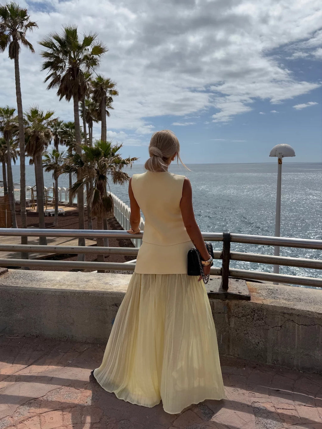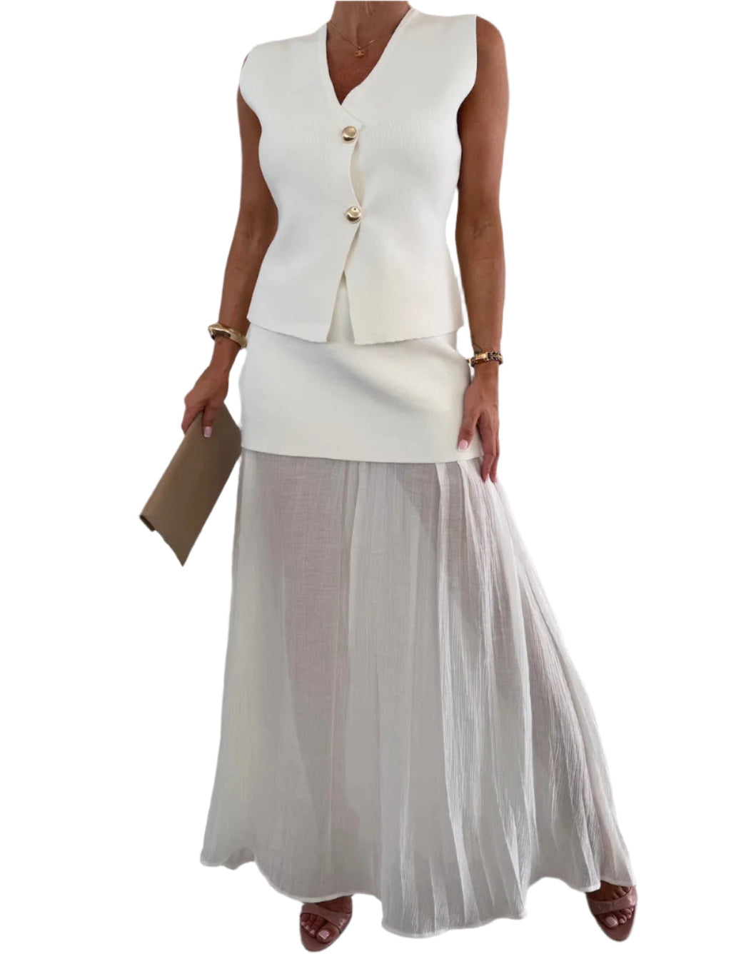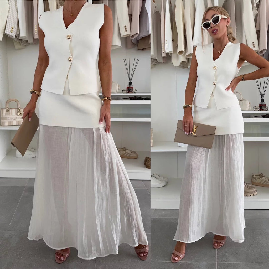- Ensemble deux pièces avec gilet et jupe maxi plissée.