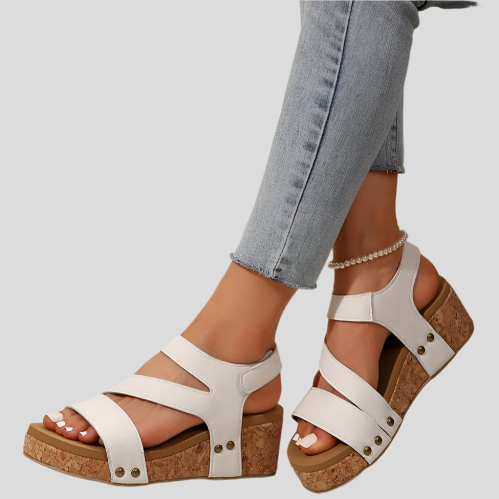 Plateforme compensée en liège : Légère et offrant un bon maintien, idéale toute la journée.