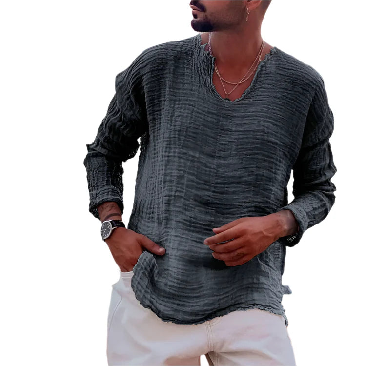 La chemise d'été Lukas est la combinaison parfaite de confort et de mode masculine moderne. Avec sa coupe aérée et son décolleté en V élégant, cette chemise est idéale pour les journées ensoleillées, que vous flâniez en ville ou que vous profitiez de vos vacances sur la côte.