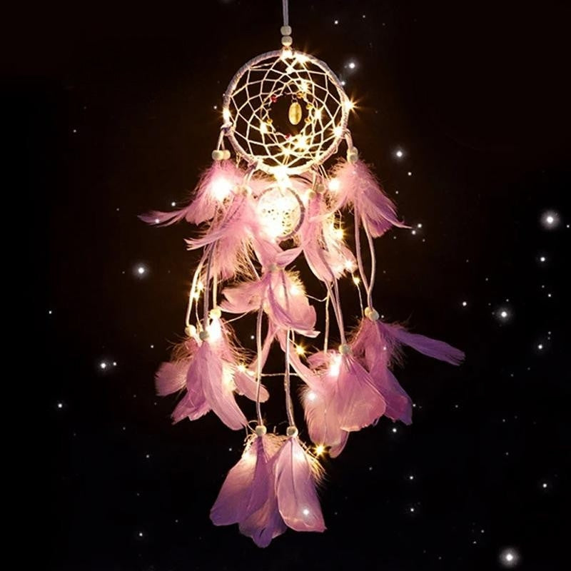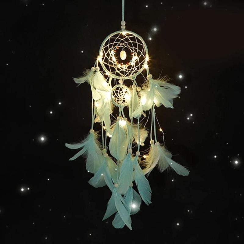 Cet attrape-rêves magnifiquement conçu combine une symbolique traditionnelle avec un éclairage LED moderne, en faisant une décoration élégante tant de jour que de nuit. Parfait comme cadeau ou comme détail personnel dans votre décoration.