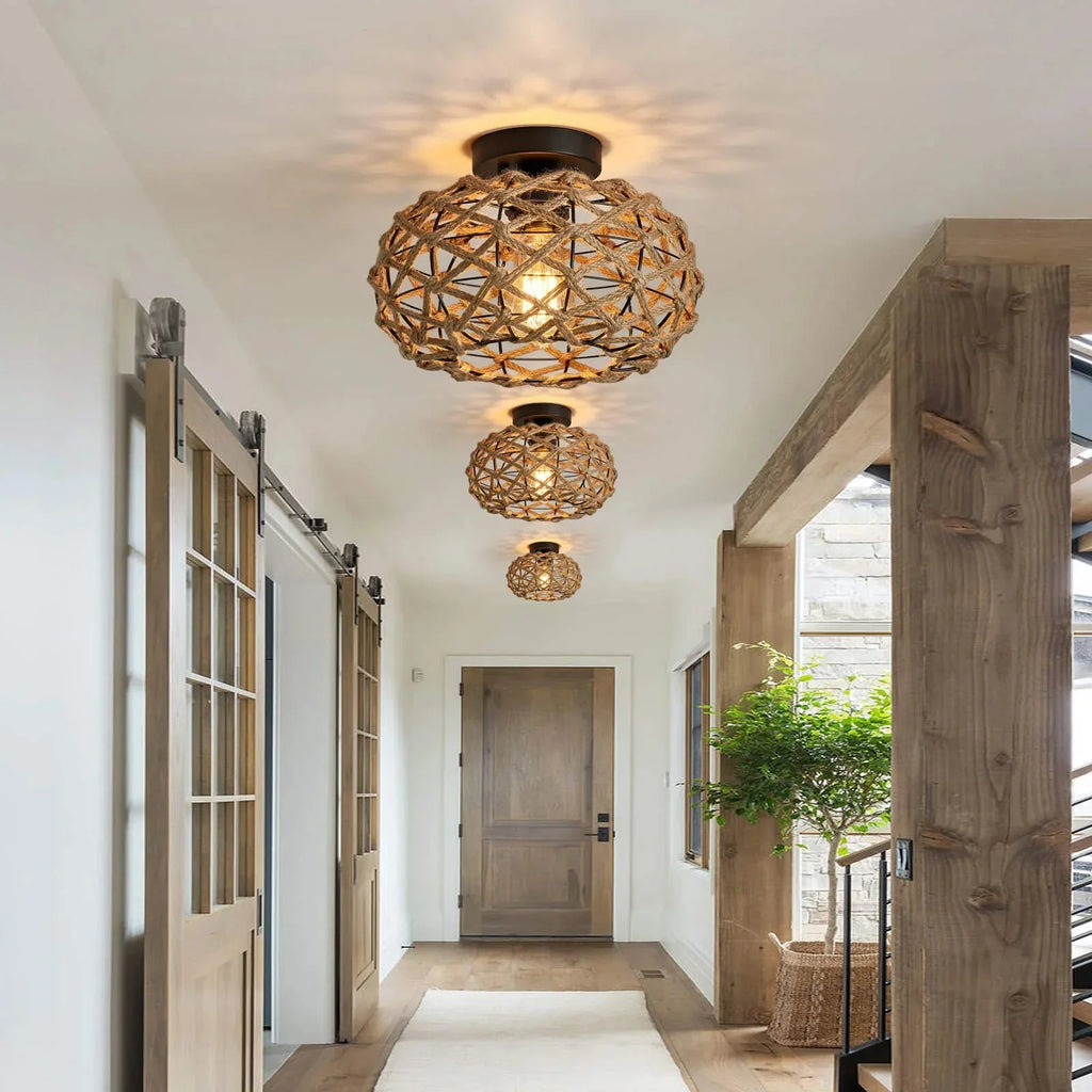 - Lampe de plafond en forme de cage rustique avec look boho.