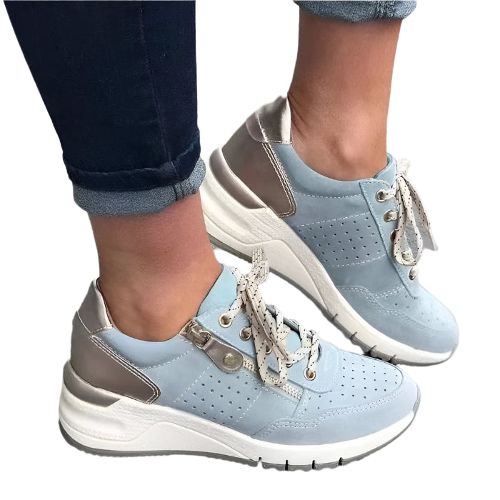Entrez dans le confort du quotidien avec les Melody Sneakers, conçues pour les femmes qui recherchent le mélange parfait de mode et de fonctionnalité. Avec un laçage sportif à l'avant, une fermeture éclair latérale tendance et une semelle légèrement surélevée, ces sneakers offrent du confort sans compromettre le style.