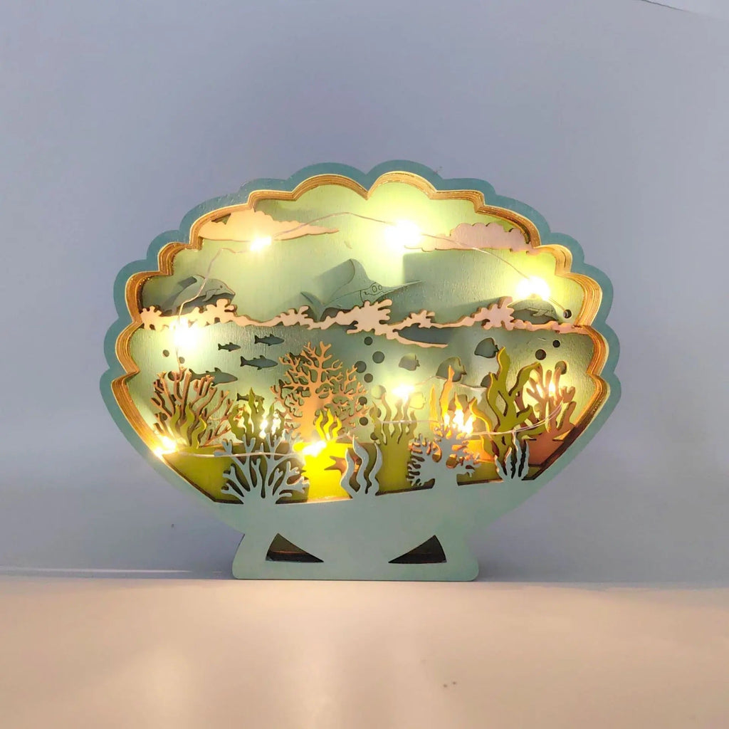 OceanGlow n'est pas qu'une simple décoration – c'est une œuvre d'art inspirée par la beauté de la mer. Les détails élaborés et les reflets subtils de lumière en font un objet captivant, tandis que l'éclairage harmonieux ajoute une touche d'élégance et de sérénité à n'importe quelle pièce.