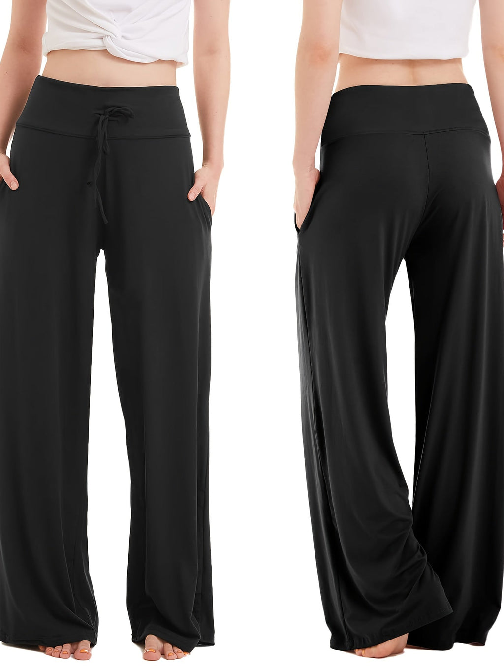 Fabriqués à partir d'un tissu doux et extensible, ces pantalons de yoga disposent d'une taille élastique avec cordon de serrage pour un ajustement personnalisé.
