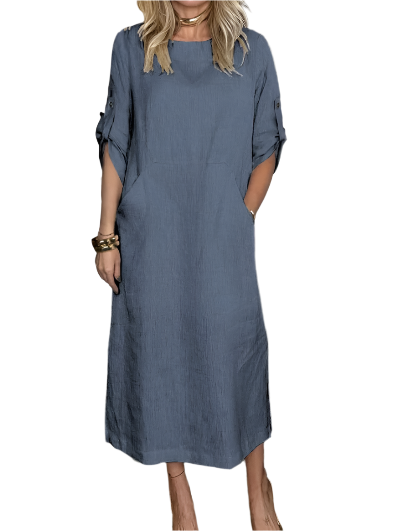 La robe d'été Selina Let pour femmes est le choix parfait pour les journées chaudes, où confort et style vont de pair. Sa coupe décontractée et son mélange de coton doux en font un choix idéal pour les usages quotidiens et les sorties décontractées. La silhouette simple mais élégante crée un look féminin et intemporel.