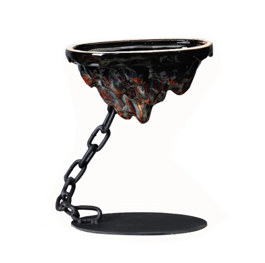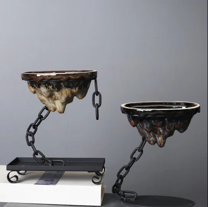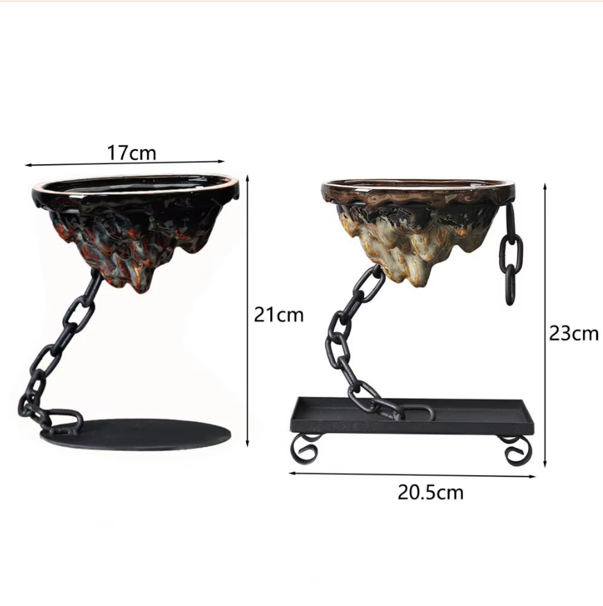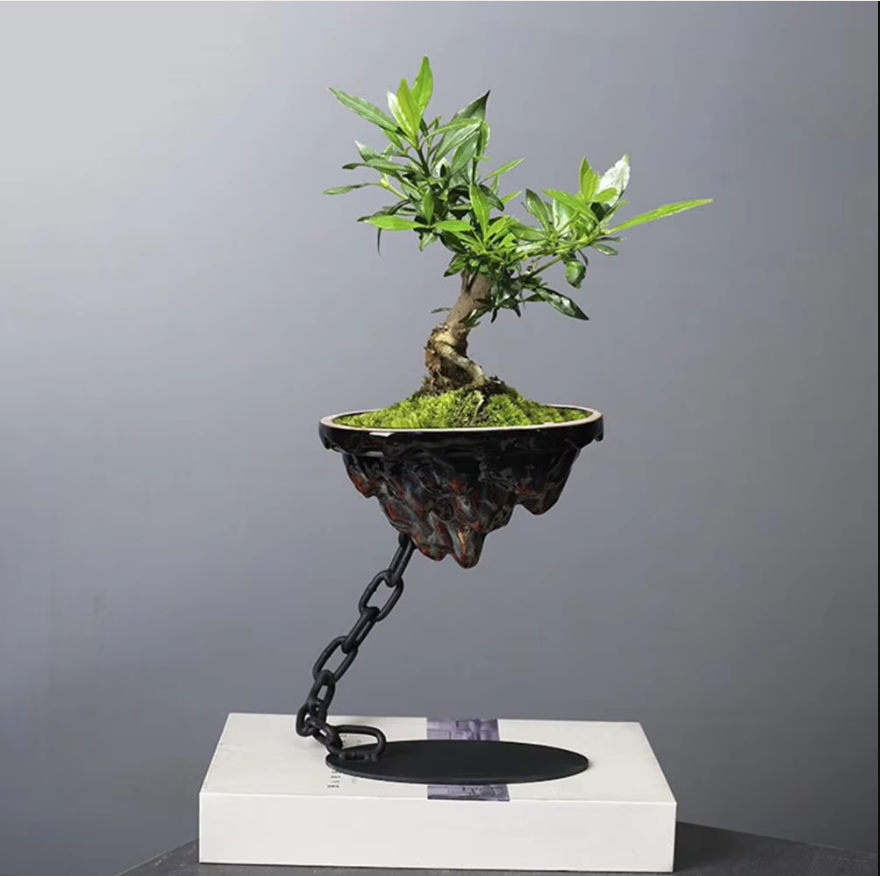 Chaîne et base en métal suspendues : Offre un support stable et élégant.