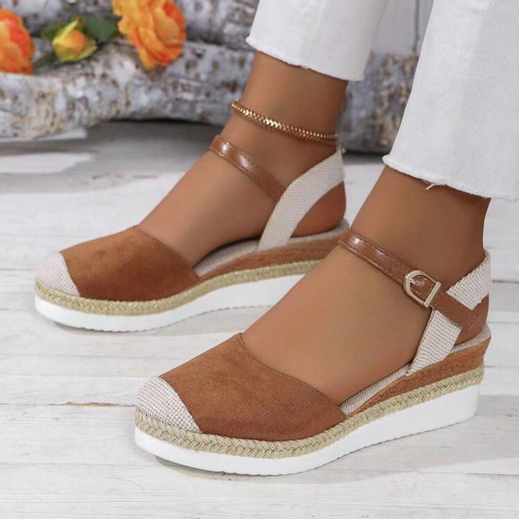 Les Sandales compensées Sara Espadrille - un mélange parfait de mode et de confort. Ces sandales sont conçues avec un talon compensé de soutien et une bride de cheville sécurisée, offrant un look intemporel avec une touche moderne. Que ce soit pour des journées décontractées ou des occasions spéciales, elles sont un essentiel de l'été.