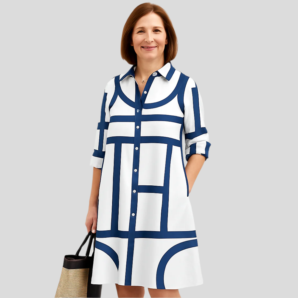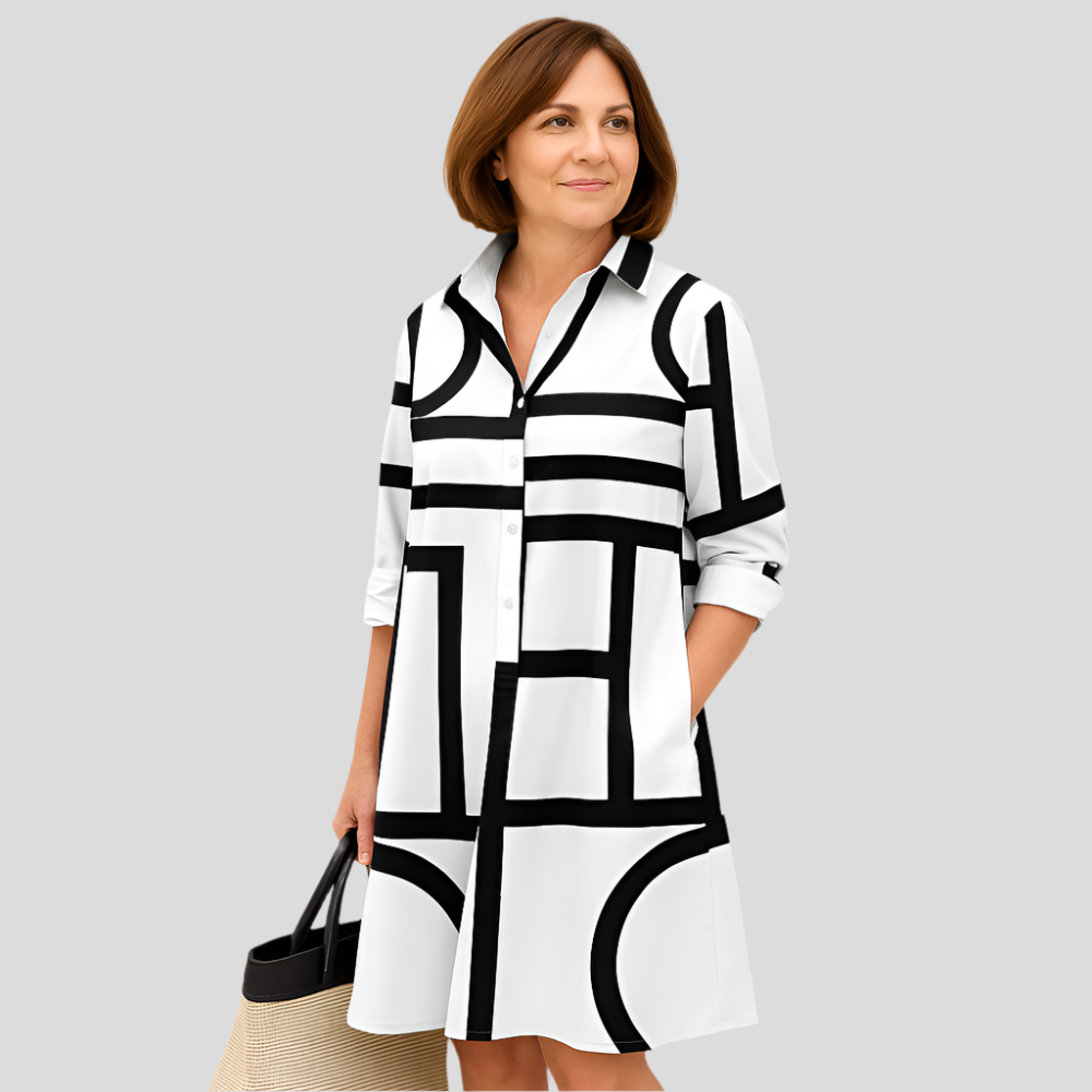 Élevez votre garde-robe quotidienne avec la robe midi Sofie Everyday à poches, une pièce polyvalente qui allie confort, praticité et design moderne. Dotée d’un imprimé graphique audacieux, cette robe affirme votre style en toute confiance tout en allongeant la silhouette et apportant une touche visuelle à toutes vos tenues.