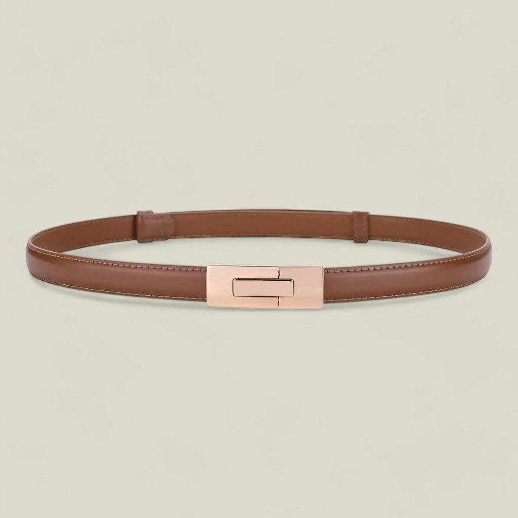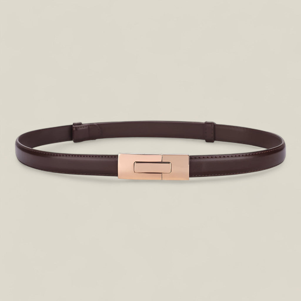 La ceinture en cuir Sophia Slim est conçue pour le confort et le style, avec un ajustement réglable qui flatte n'importe quelle silhouette. Le cuir doux assure une utilisation durable, tandis que la boucle dorée polie ajoute une touche de luxe.
