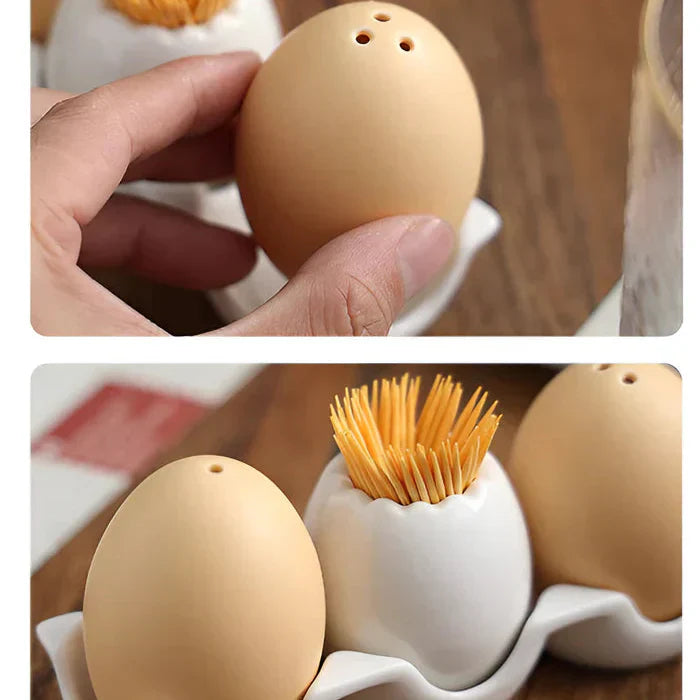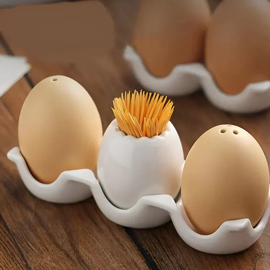 - Set de bocaux à épices en forme d'œuf avec design minimaliste.