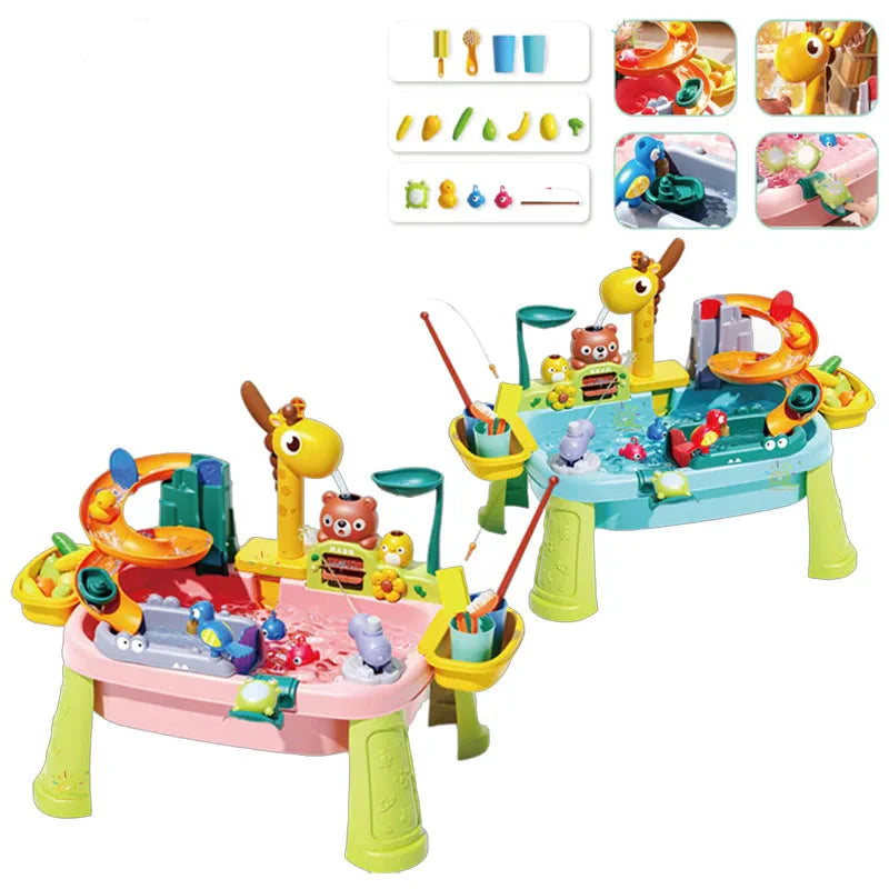 Splash ‘n Fish invite les enfants à plonger dans un monde sous-marin fascinant rempli de poissons mobiles et de fonctions ludiques. Avec ses roues rotatives et ses effets d’eau jaillissante, il stimule à la fois l’imagination et la coordination. Un jeu éducatif qui garantit des heures de plaisir et de développement.