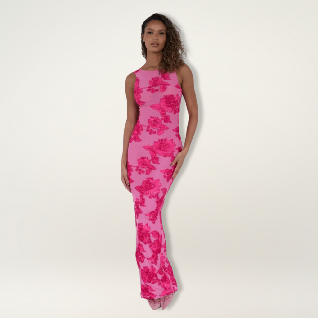 La robe Stella fait une déclaration avec sa nuance rose vive et son impression florale captivante. Sa silhouette ajustée épouse vos courbes aux bons endroits, tandis que la coupe sans manches et le décolleté montant ajoutent une touche raffinée et élégante. Cette robe est créée pour des moments qui requièrent de l'attention.