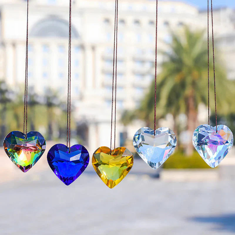 - Attrape-soleil en forme de cœur avec pendentif en cristal suspendu.