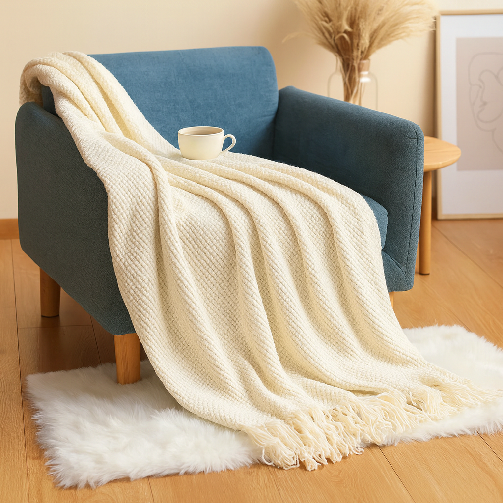 - Détails à pompons : Des pompons raffinés soulignent le caractère chaleureux et convivial du plaid.