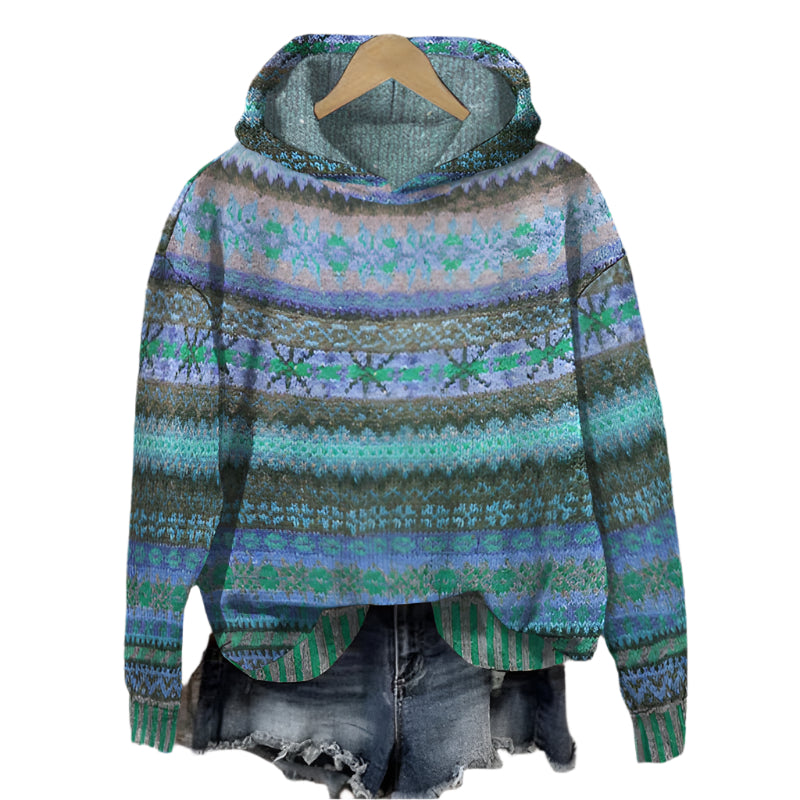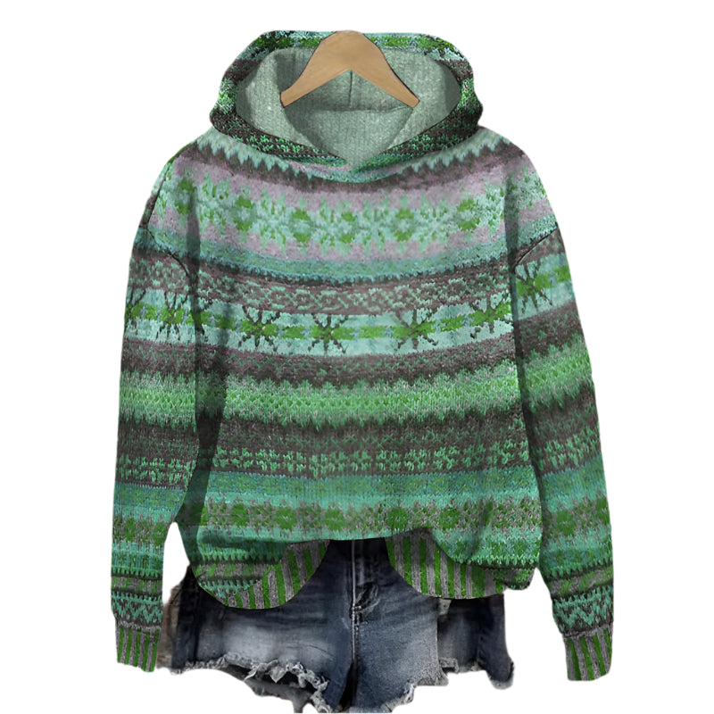 Enveloppez-vous de chaleur et de charme avec le sweatshirt à capuche Vanessa, qui arbore un motif Fair Isle intemporel. Inspiré des designs nordiques traditionnels, il apporte une touche saisonnière à votre garde-robe quotidienne.